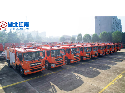 湖北江南10臺東風(fēng)8.2噸水罐消防車交接儀式